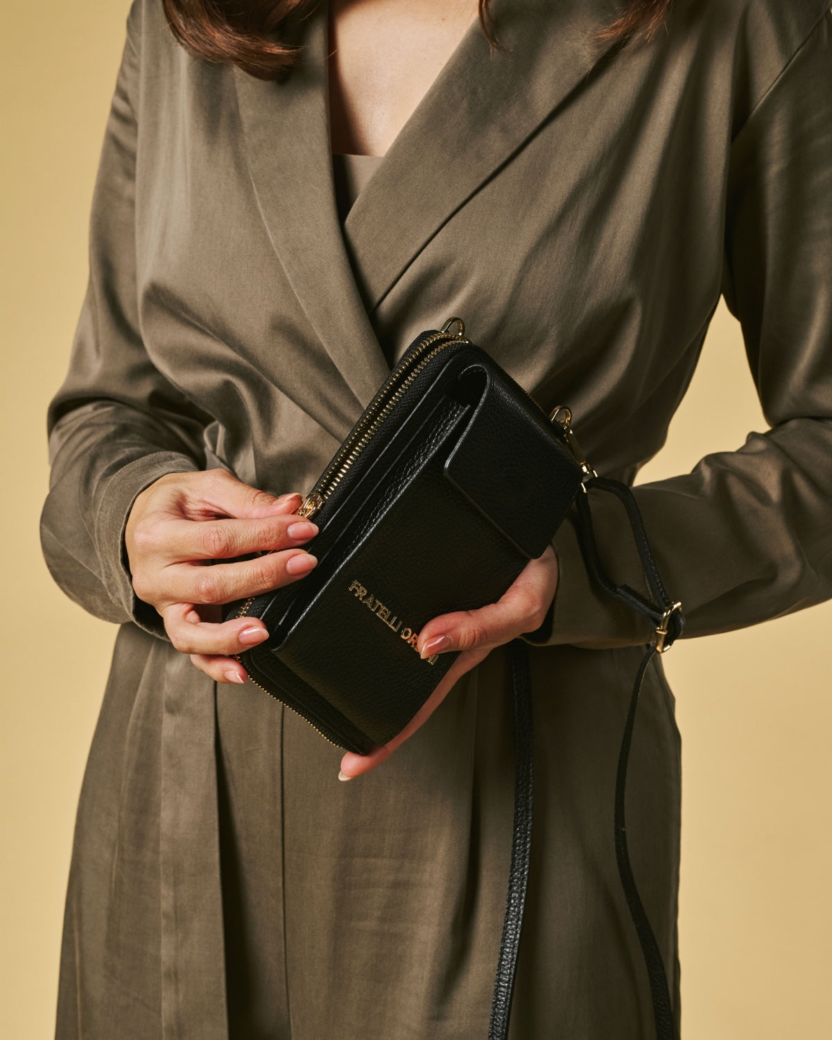 The Giada is a slim and refined phone bag designed for days when you only want to carry the essentials. Handmade in Italy by skilled artisans for Fratelli Orsini, it is crafted from full-grain calf leather with a natural grain texture that feels soft yet resilient. Its sleek vertical format keeps the silhouette minimal and discreet while remaining highly practical for everyday use.