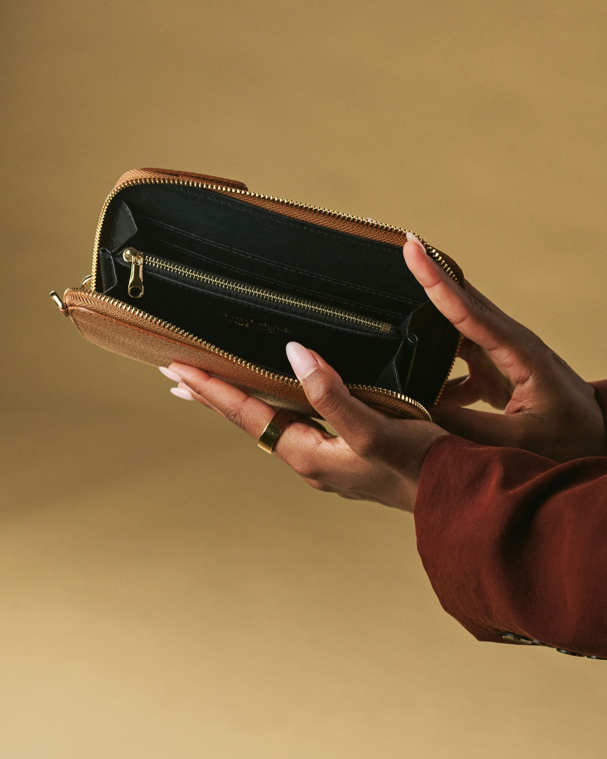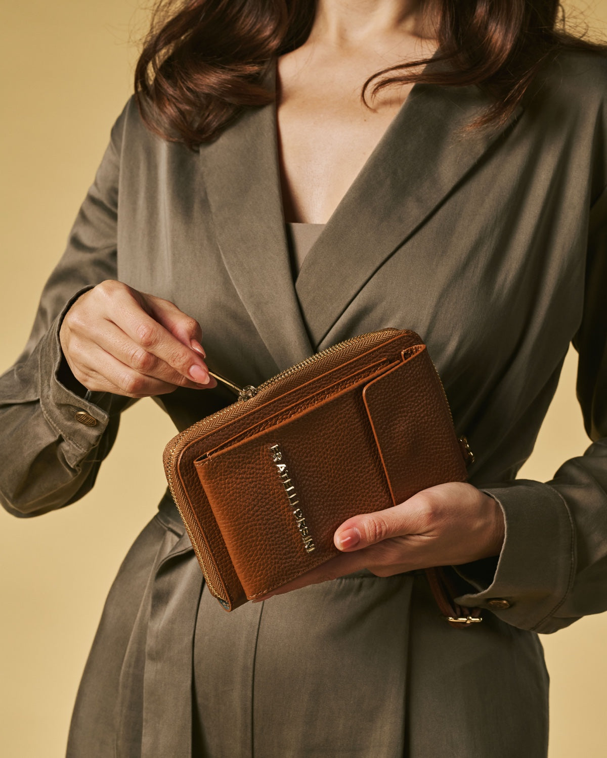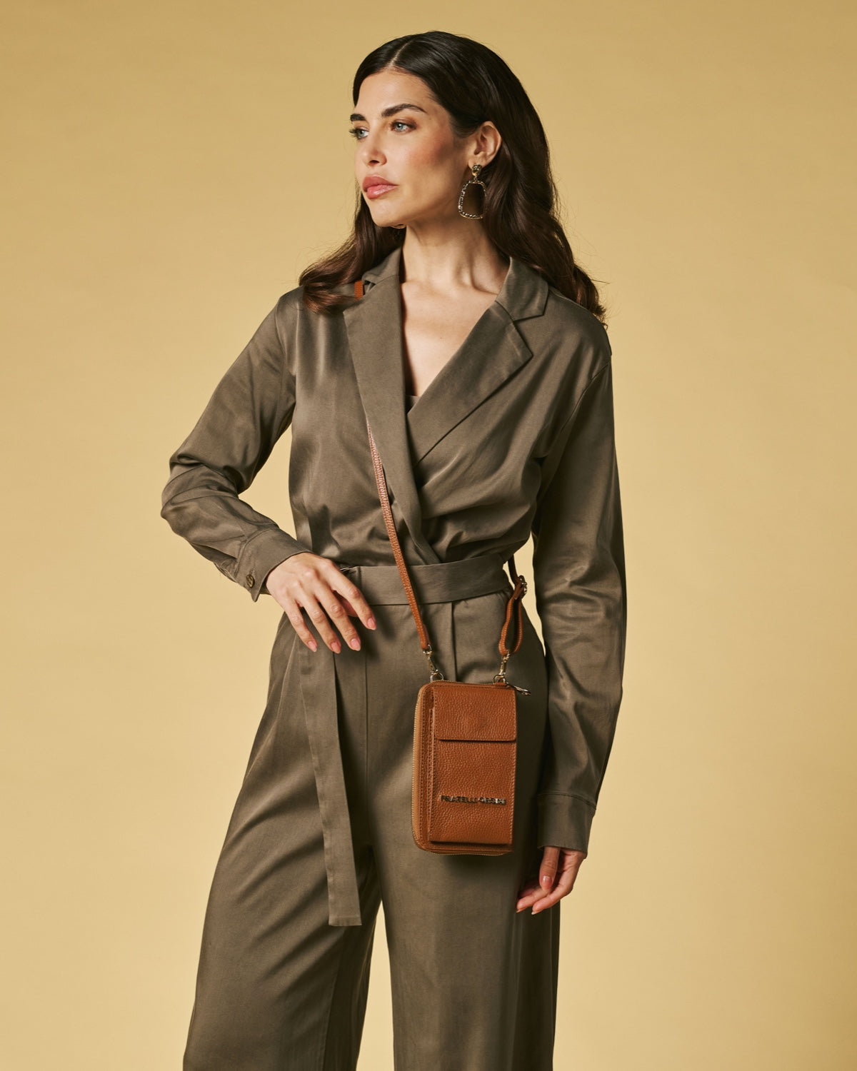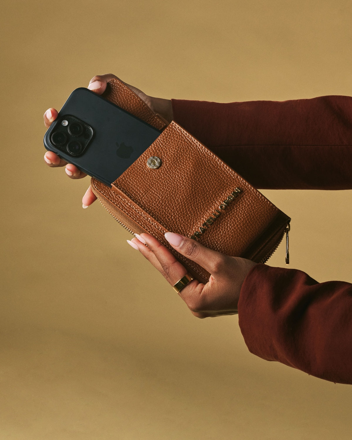 Giada (cognac) - Women's crossbody phone wallet with shoulder strap