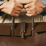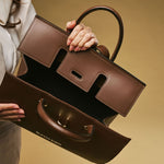 The Oriana handbag from Fratelli Orsini is defined by its structured elegance and refined top-handle silhouette. Handmade in Italy by skilled artisans, it is crafted from full-grain calf leather with a smooth finish that gives the design a polished look. The gold-toned clasp detail adds a subtle focal point while keeping the overall character understated and timeless.