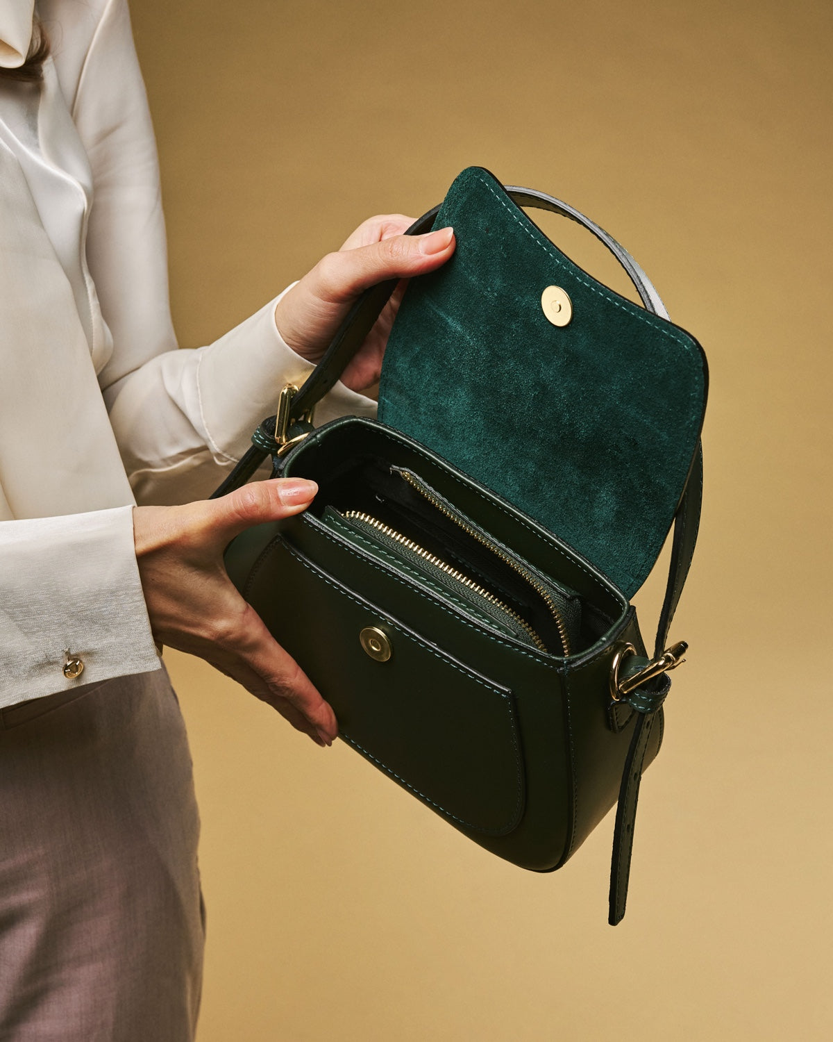 Ottavia (green) - Italian calf leather women's crossbody bag (with shoulder strap)