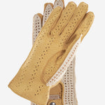 CA4620 (tan) - Women’s Italian crochet and carpincho leather driving gloves