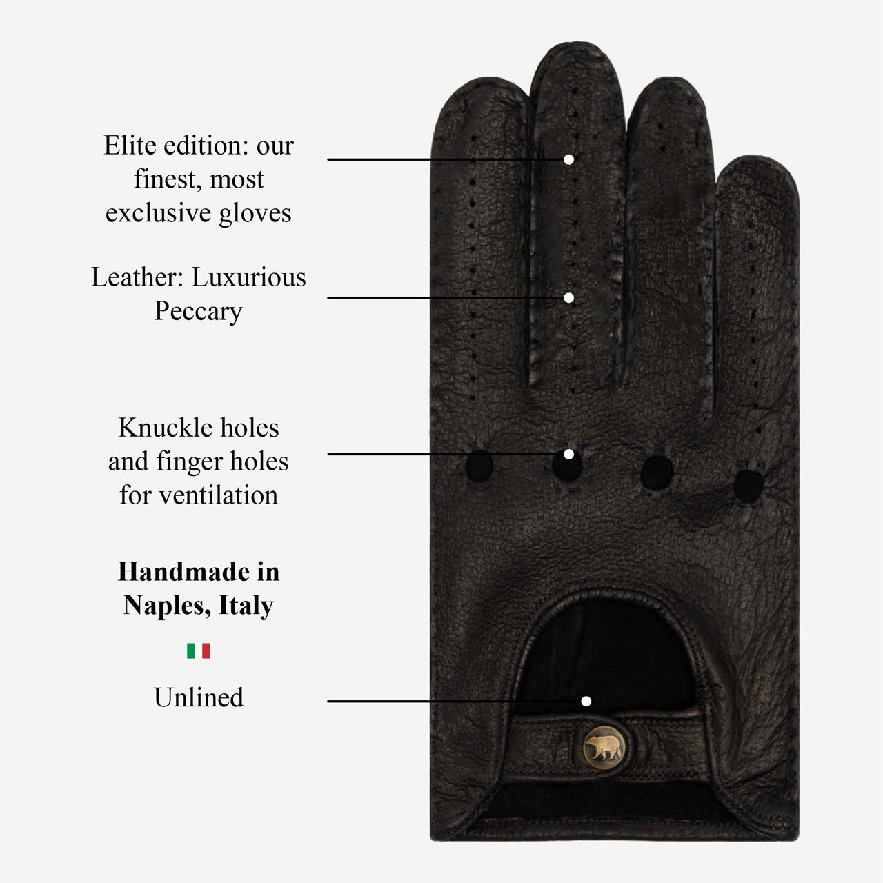 Raffaella (black) – Luxurious Italian peccary driving gloves