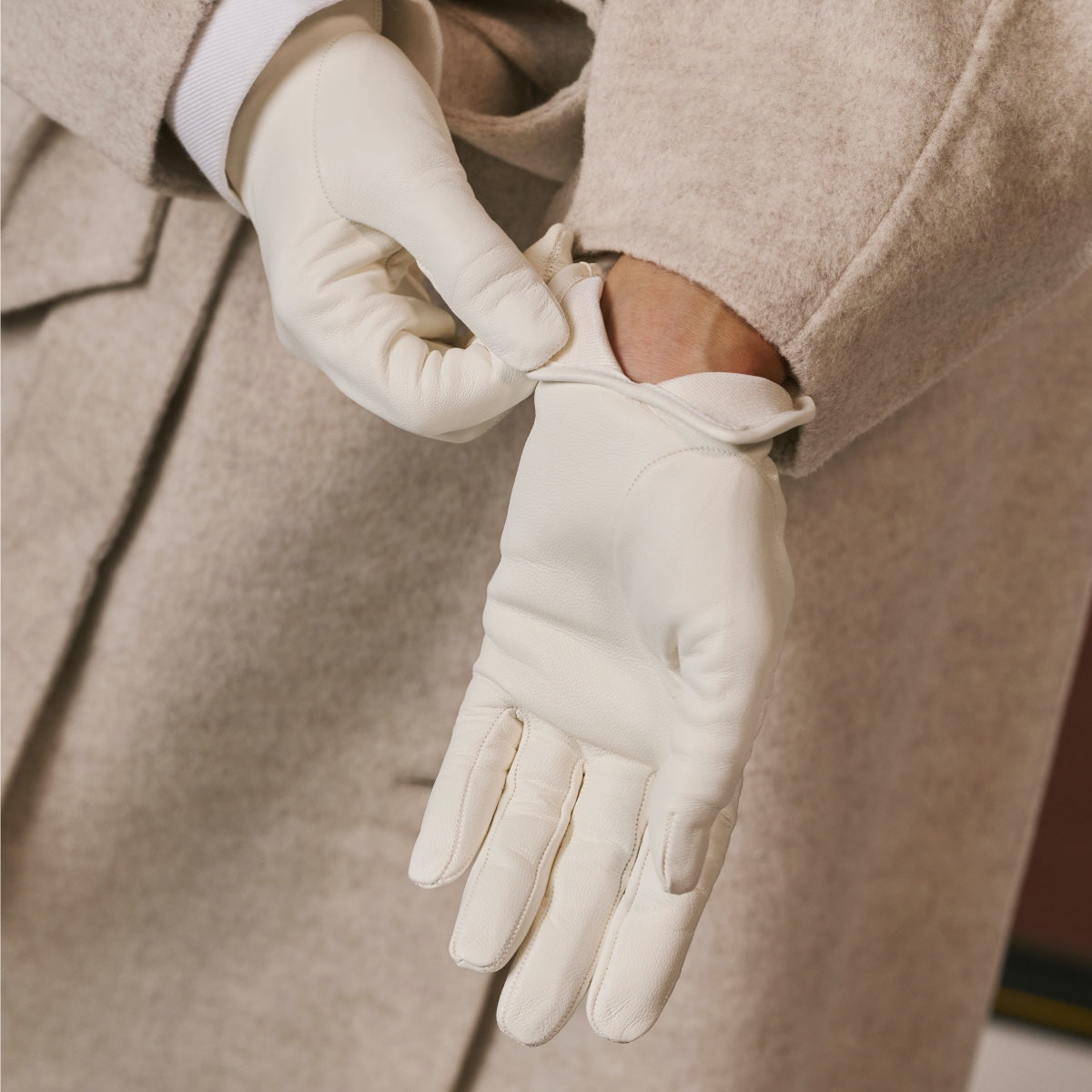 Sofia (white) - Italian lambskin leather gloves with silk lining