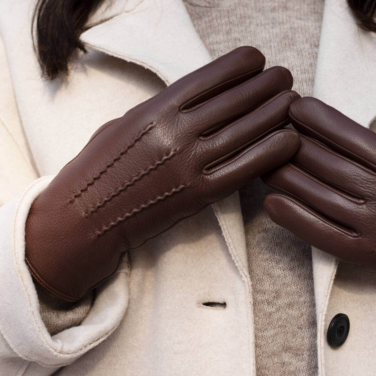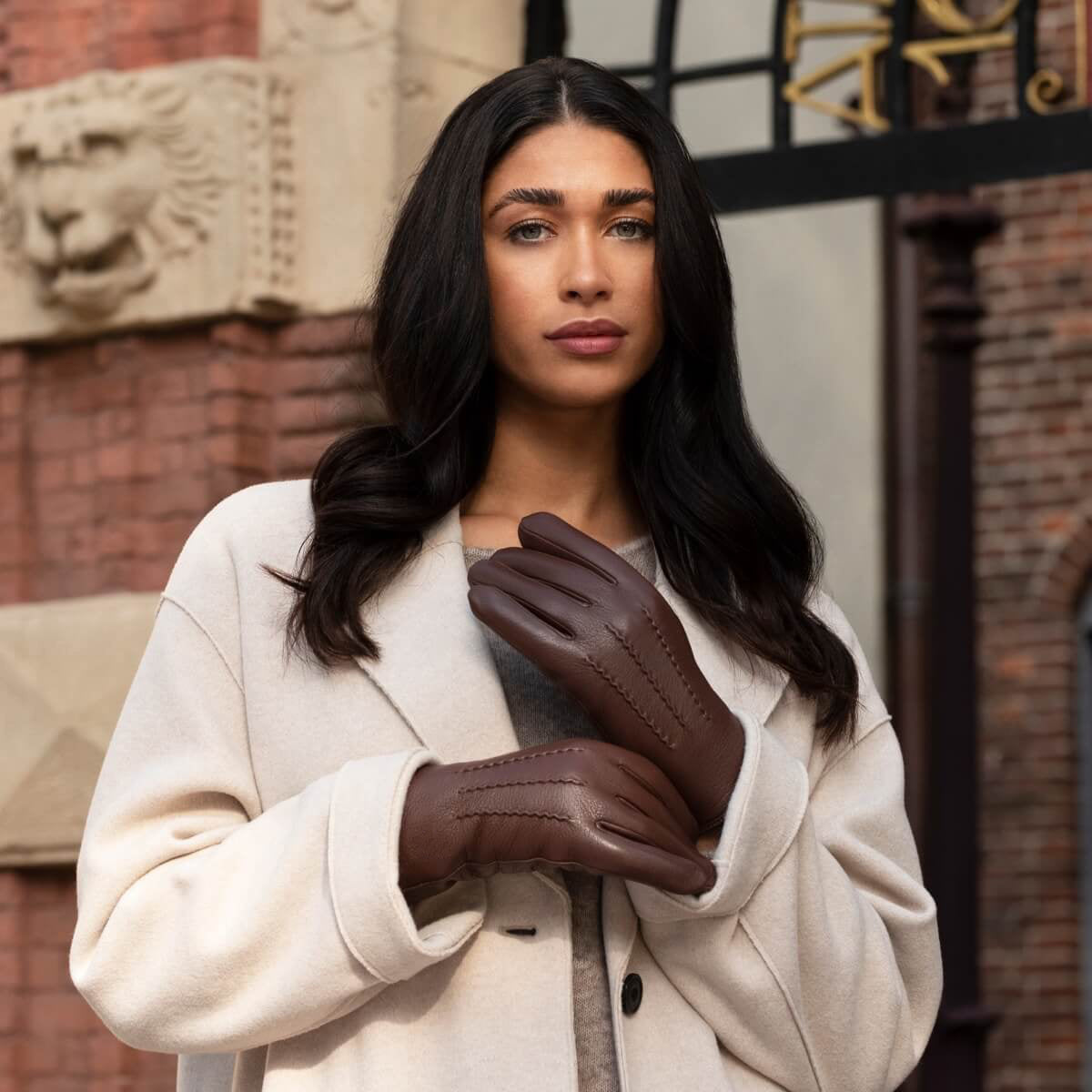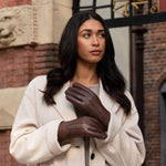 Evelyn (brown) - Goatskin leather gloves with soft lambswool lining and touchscreen feature