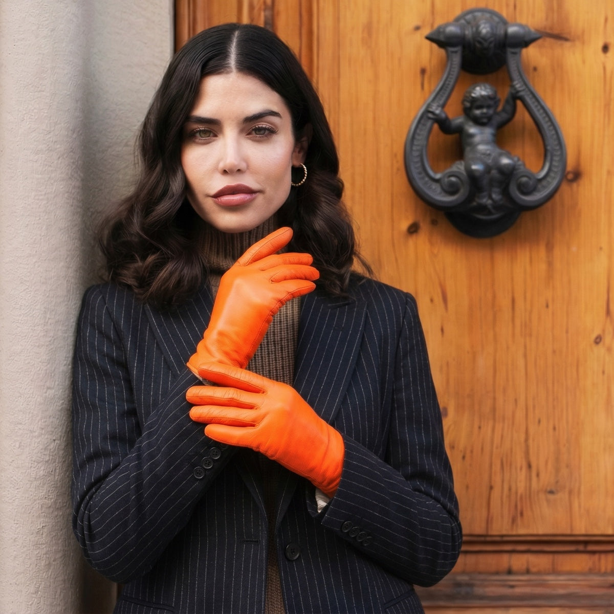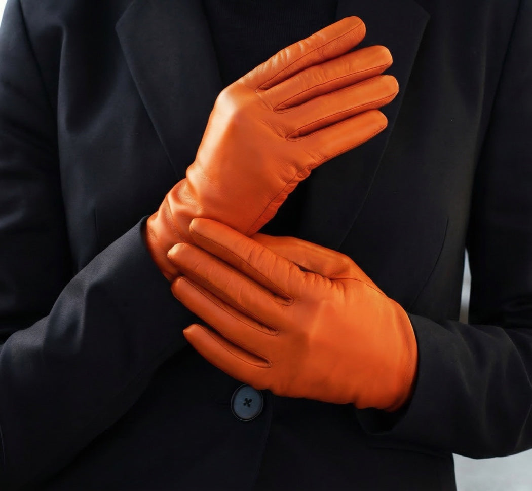 Isabella (orange) - Italian lambskin leather gloves with luxurious cashmere lining
