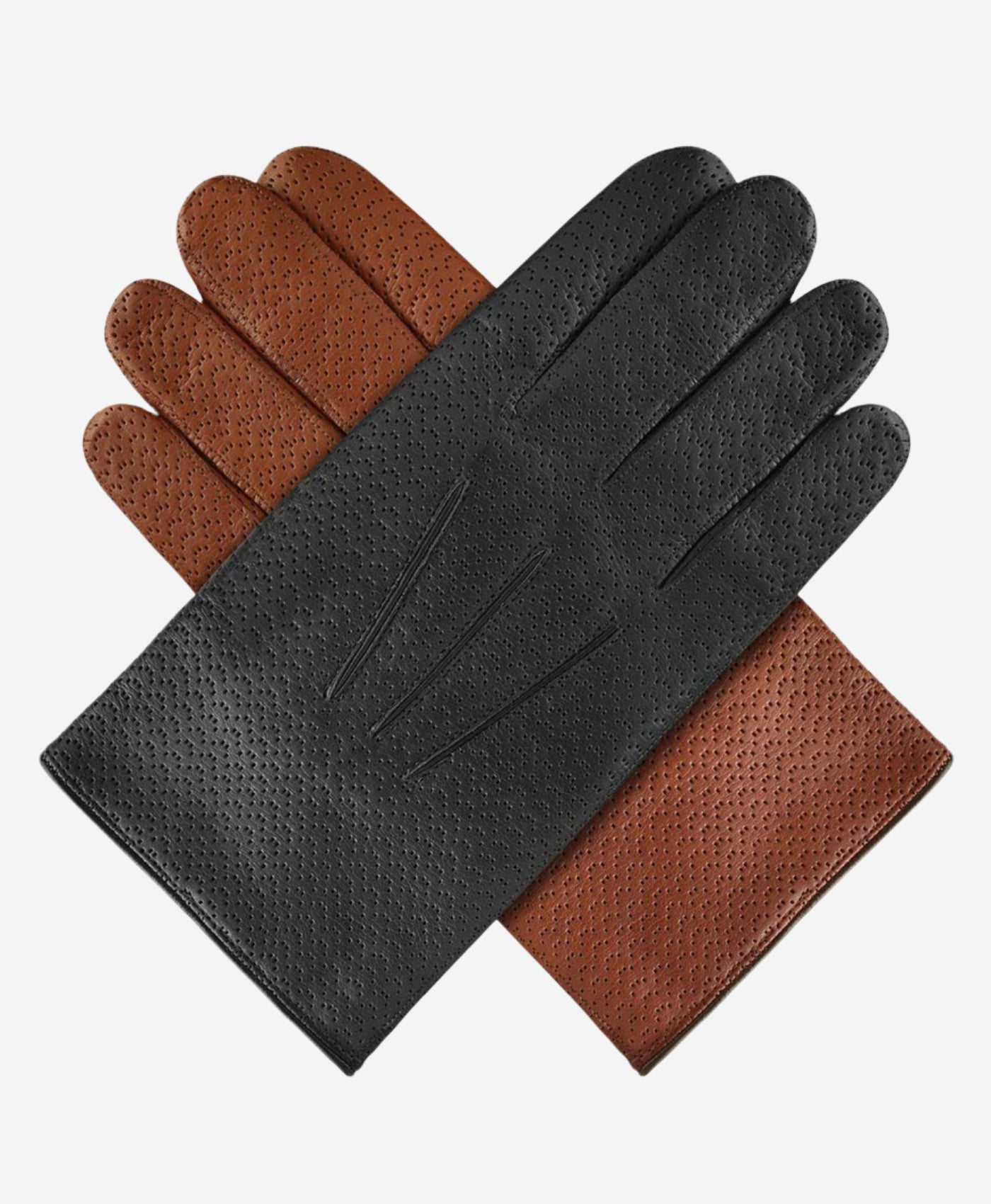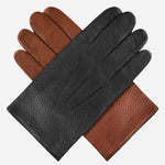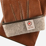 CA3976 (cognac) - Men's Italian Cashmere Lined Leather Gloves With Unique Contrast Points