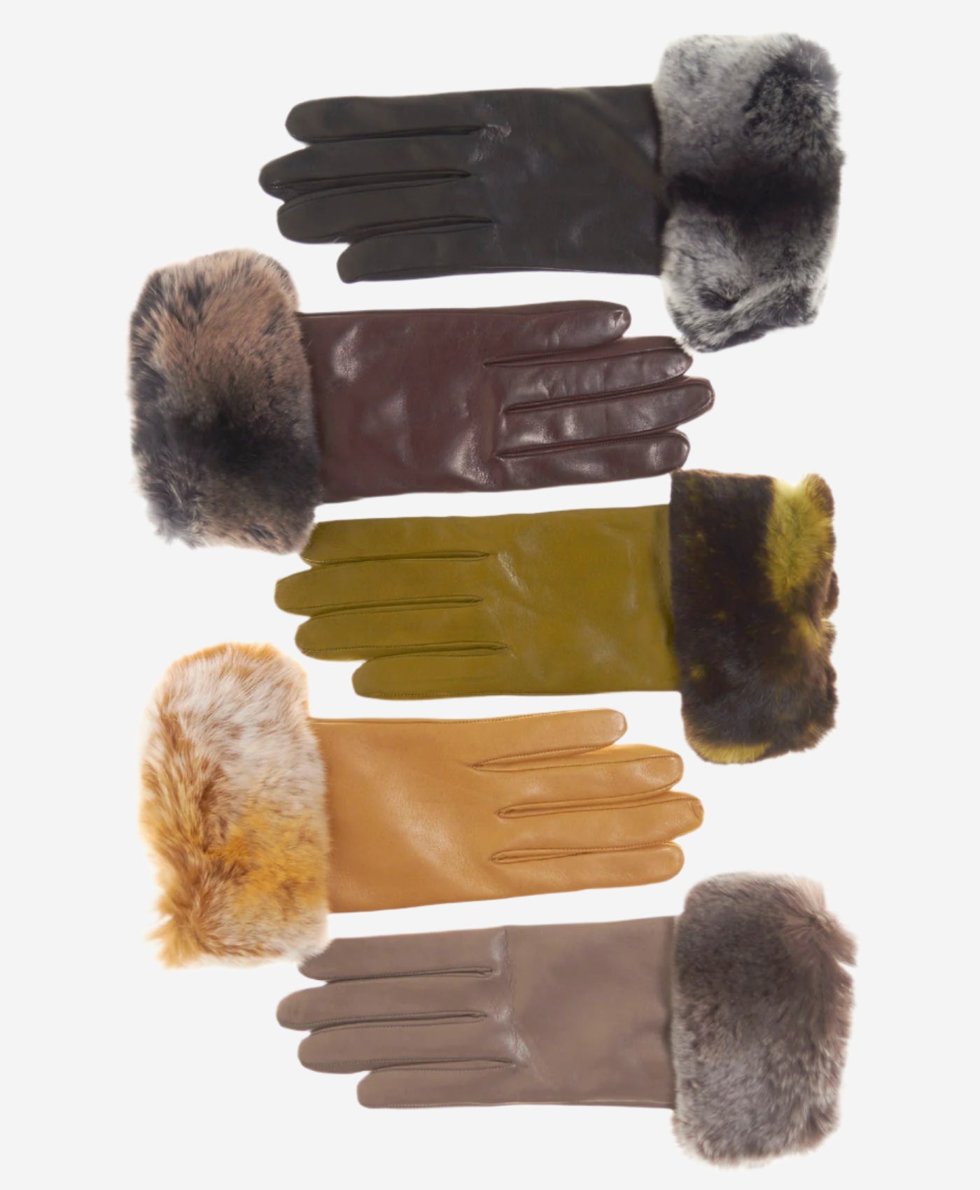 The luxurious look and feel of Rex Rabbit fur highlights these super luxurious lambskin gloves by Fratelli Orsini.  Lined in 100% Italian Cashmere, with a Rex Rabbit Fur Cuff, that can be either worn facing out for show, or 'rolled up' so you feel that oh-so-soft rex rabbit fur against your arm. Like all Fratelli Orsini gloves, each one is hand cut and expertly sewn, as only Italian artisans can do.