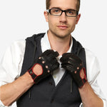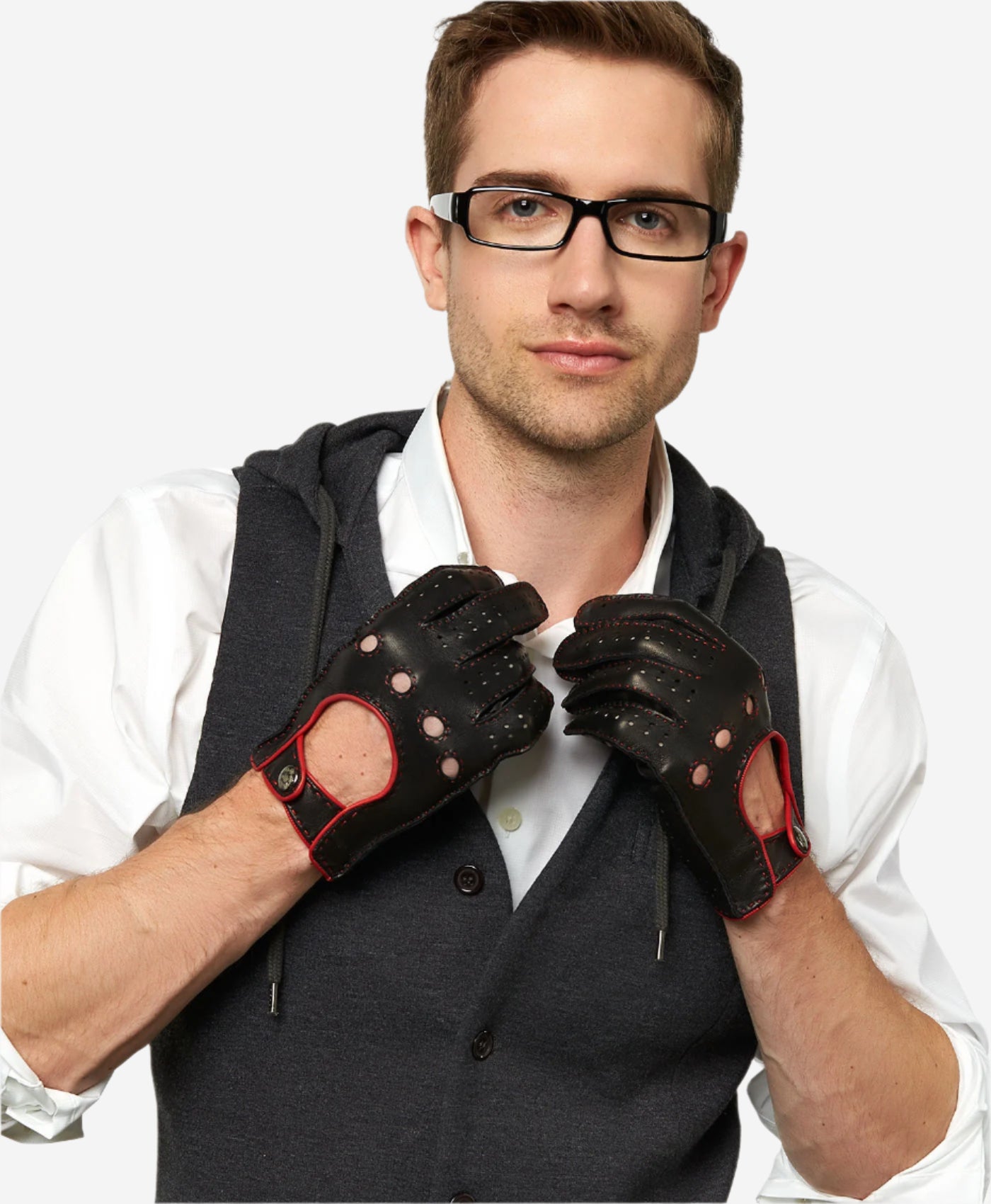 CD3288 (black) - Handsewn Italian Leather Driving Gloves with Contrast Welting